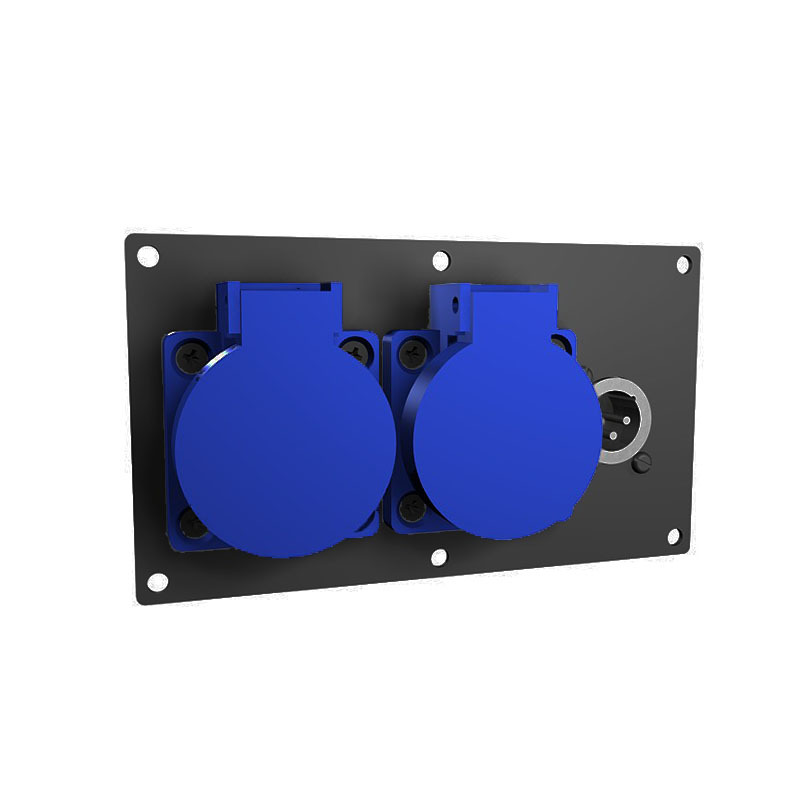 Панель лючка ПЛ.16.10. (2SCHUKO-1XLRm) Панель лючка, окрашенная порошковой краской черного цвета с разъёмами