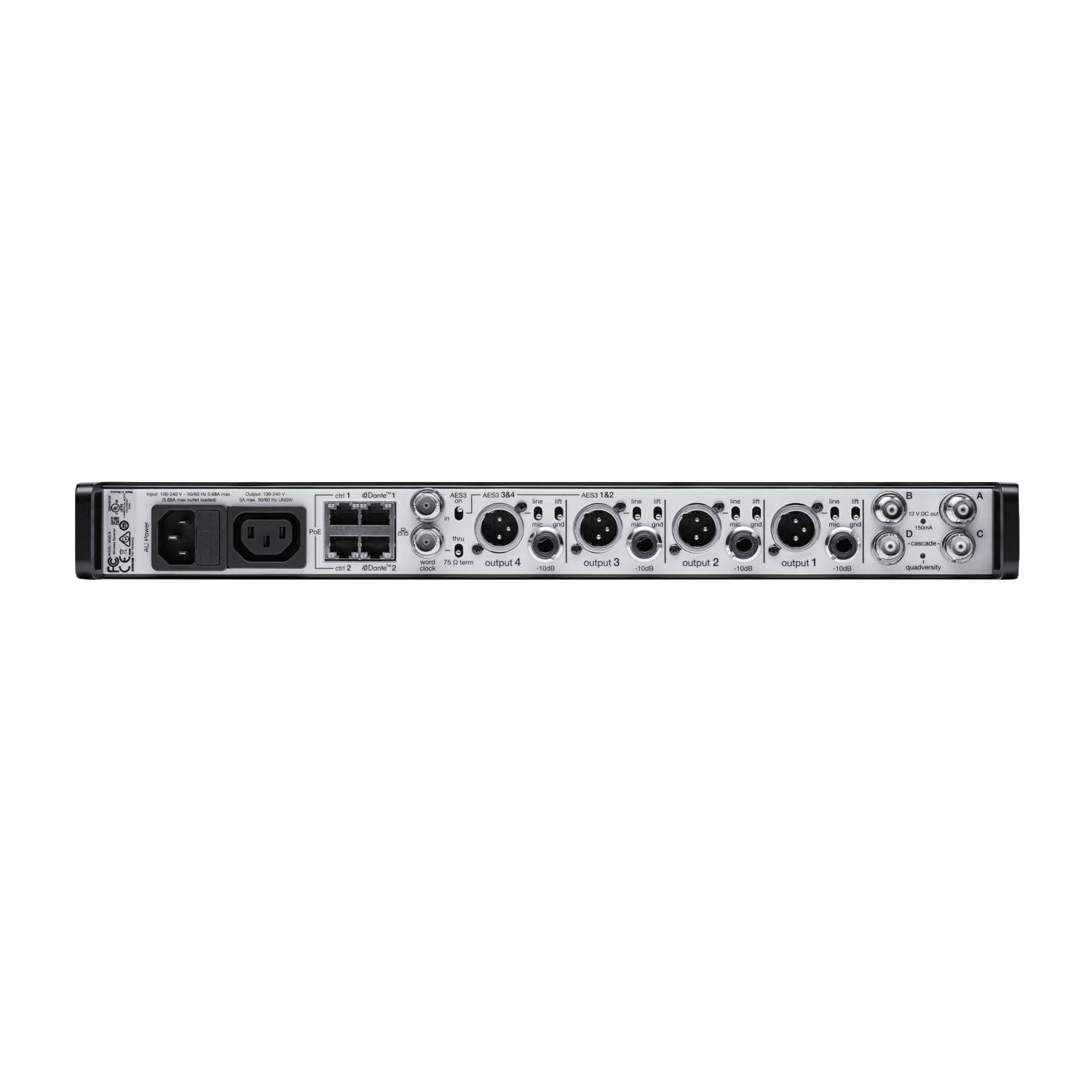 SHURE AXIENT AD4QE - четырёх канальный приемник с Евро кабелем питания и аксессурами (470-636 MHz)